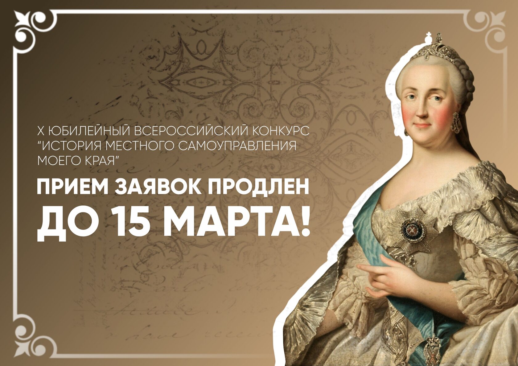 Отличная новость для тех, кто еще не успел! По многочисленным просьбам участников мы продлеваем прием заявок на конкурс «История местного самоуправления моего края» до 15 марта включительно!